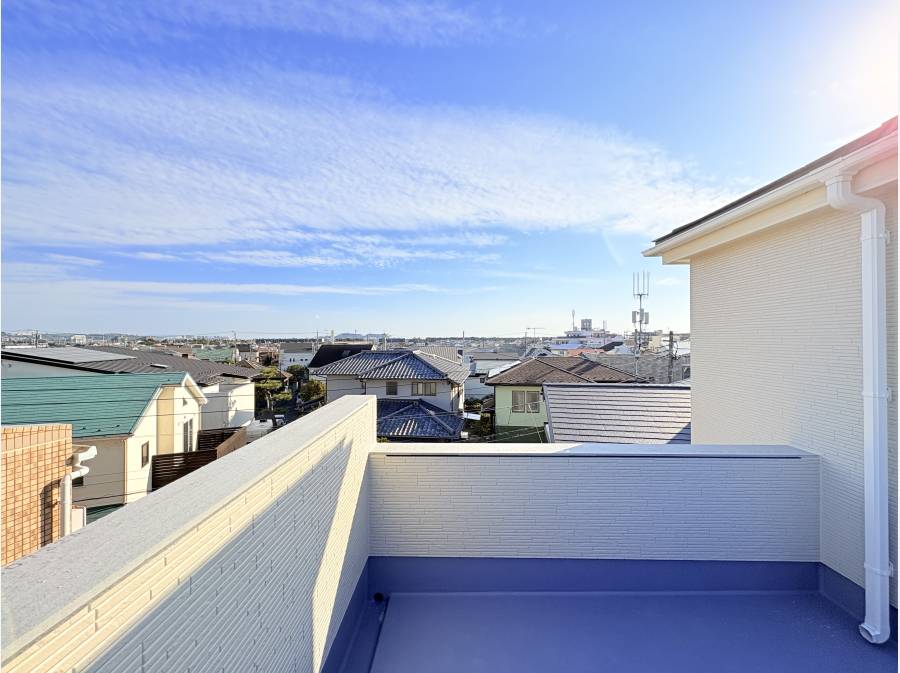 ルーフバルコニーからは江の島の景色が広がり、夜にはシーキャンドルの美しい輝きを楽しむことができる贅沢な一邸です。