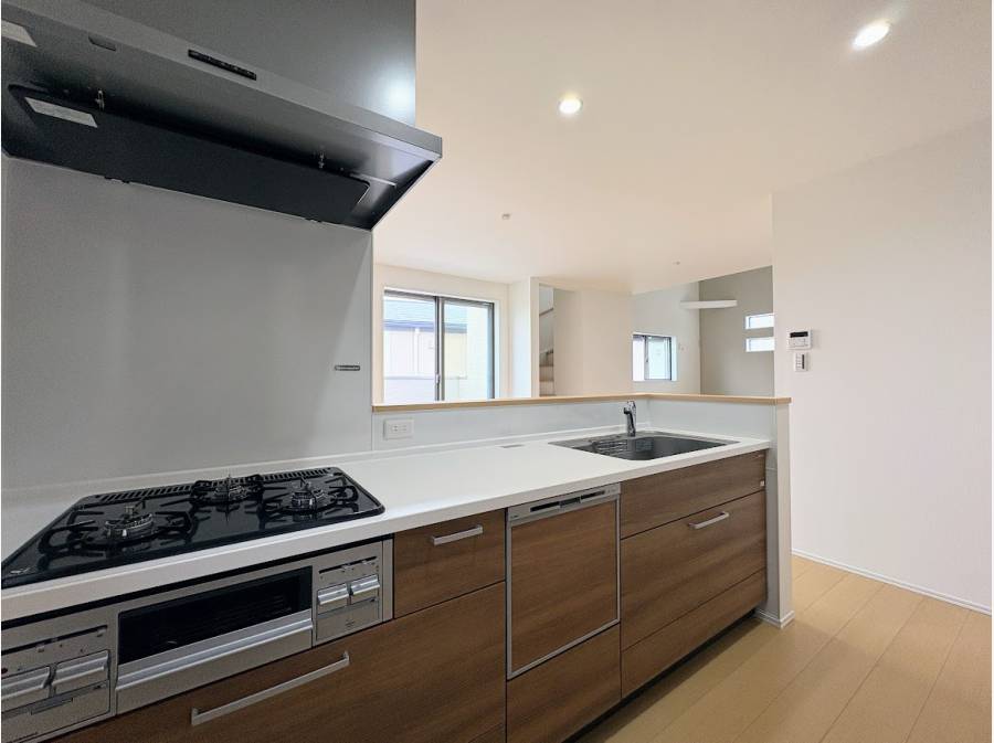 勾配天井が広がる開放的なLDKは、光が降り注ぐ家族の憩いの場となるでしょう。