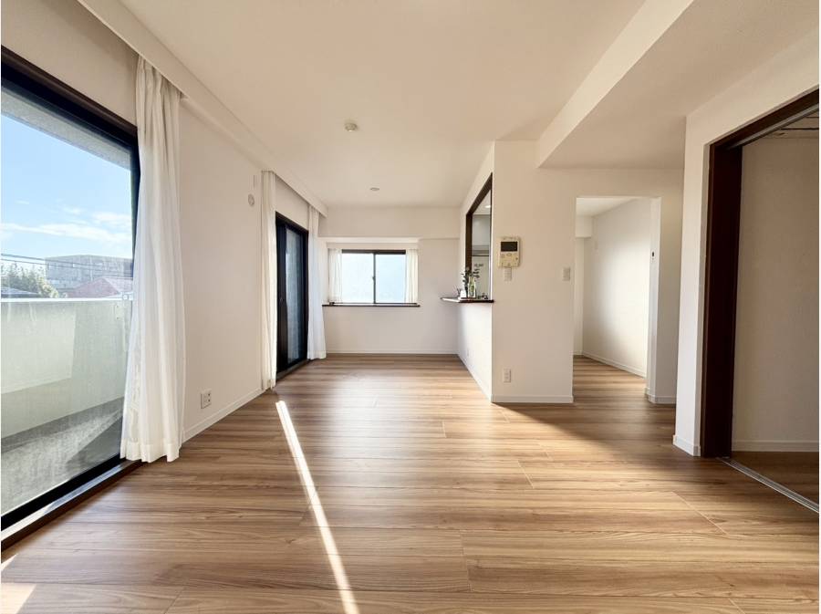 晴れた日には、バルコニーから富士山の雄大な姿を望めるーそんな特別な景色を日常にできるリノベーション済みの一室です。室内は水回りを含めて一新され、3LDKの使い勝手の良い間取りに加え、白を基調とした明るい住まいです。
