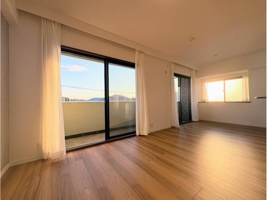 この物件は、最上階の角部屋に位置しており、室内には陽光がたっぷり差し込み、開放感あふれる眺望が楽しめます。さらに晴れた日には、バルコニーから富士山を望むことができる、贅沢な景色が広がります。