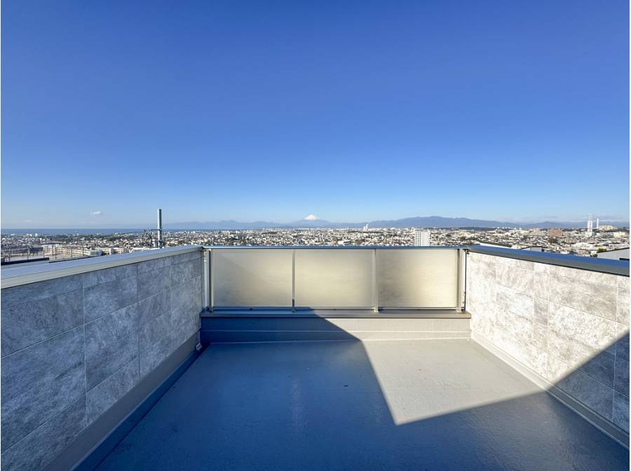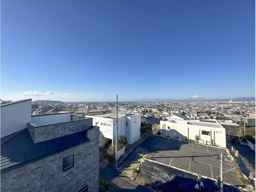リビングから望む雄大な富士山、ルーフバルコニーへ上がればさらに江ノ島まで一望できる湘南パノラマビューが広がります。