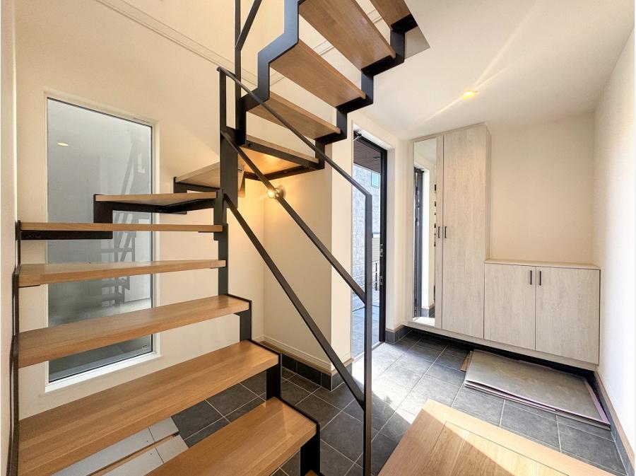 玄関から光を纏いながら伸びるスエルトン階段も存在感がありますね。