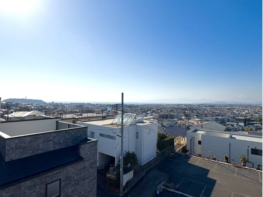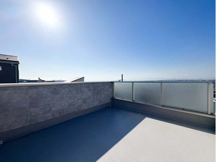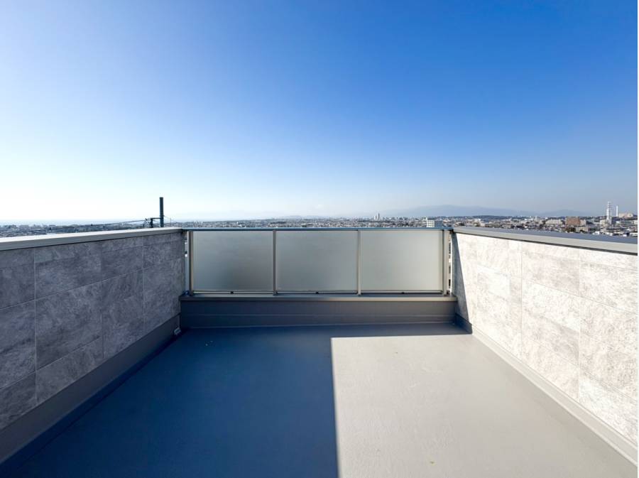屋上のルーフバルコニーはイスやテーブルを広げてもゆとりある広さで、海・富士山・江ノ島を眺めながらBBQやお食事などをお楽しみいただける開放感ある空間です。