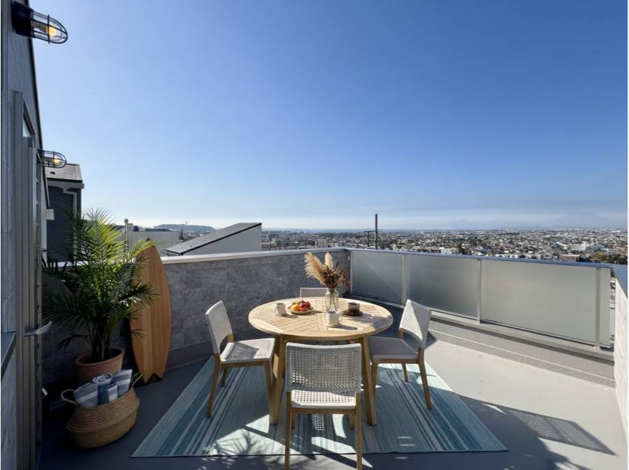 ルーフバルコニーからは富士山だけでなく、海と江ノ島も望める贅沢なロケーション