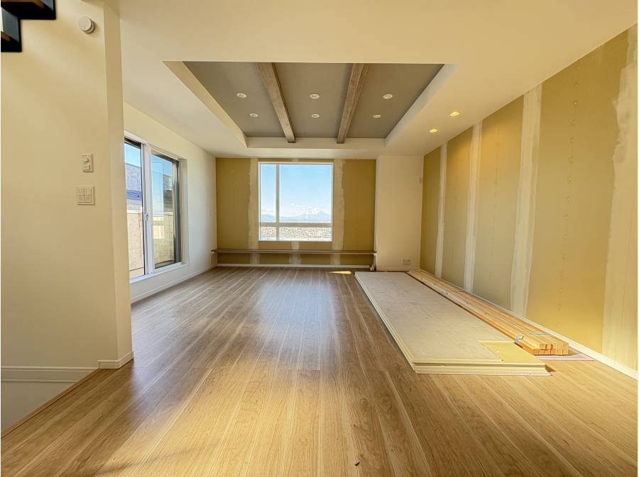 建物は「認定長期優良住宅」で、耐震等級3や省令準耐火構造を採用しており、安心感のある住まいです。また、広々としたLDKには床暖房を備え、寒い季節も快適に過ごせます。さらに、電動シャッターが標準装備されているなど、暮らしを快適にする設備も充実しています。