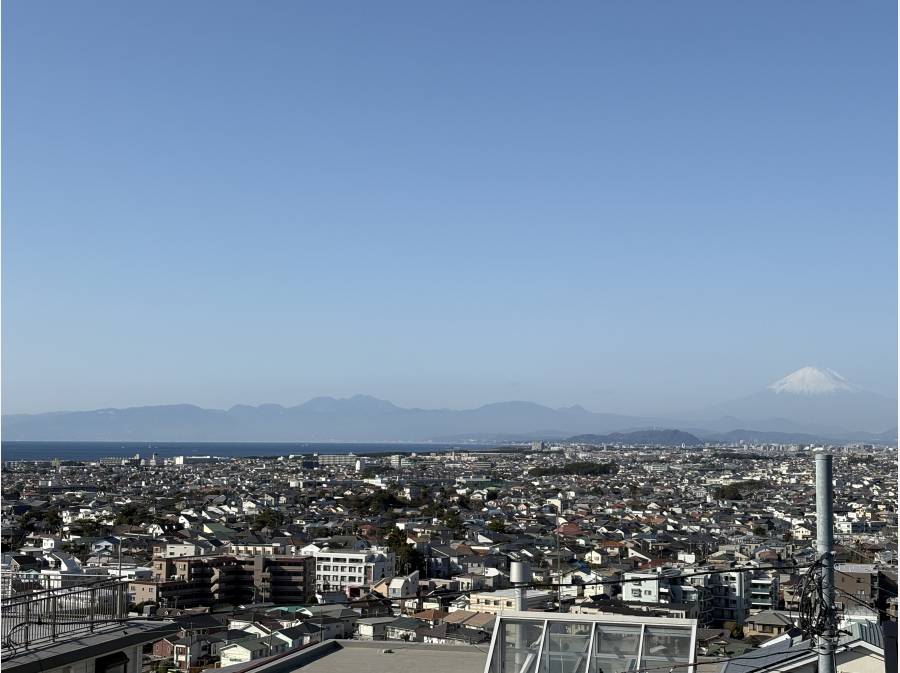 高台のポジションからは、眼下に広がる街並み、その先には海や富士山を望む景色を楽しむことも。