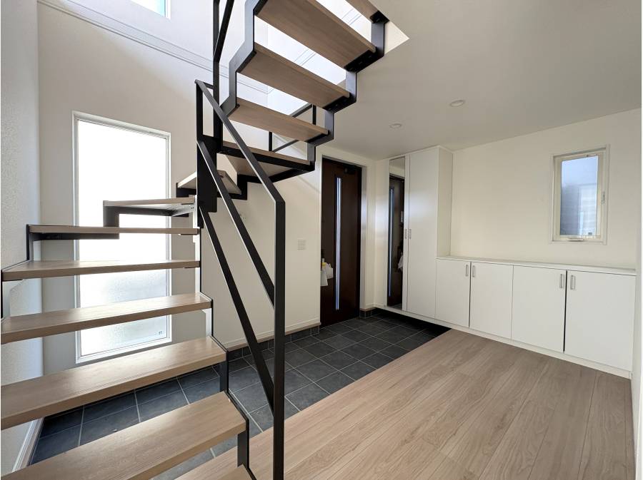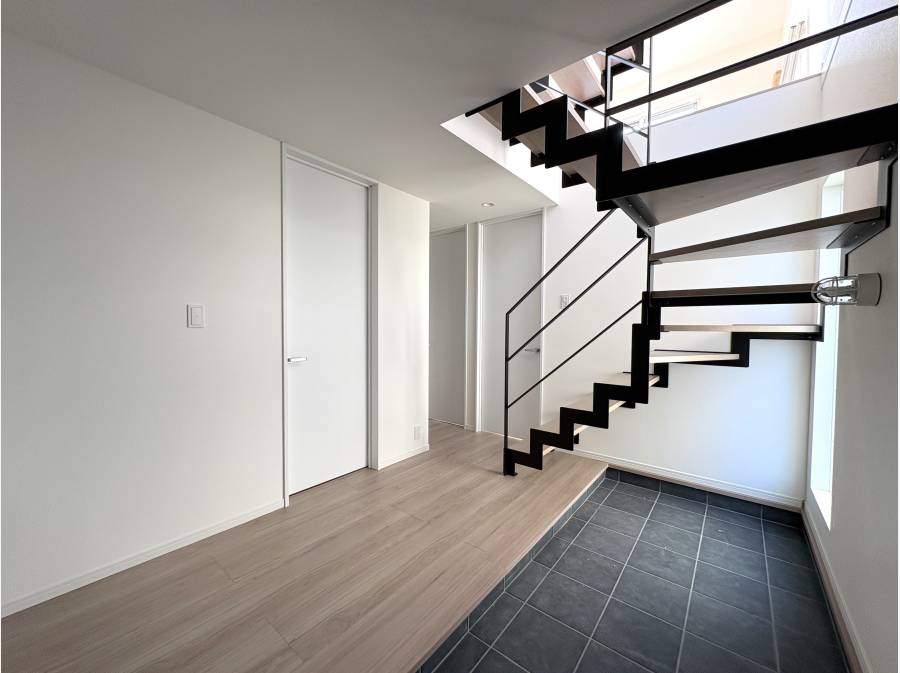 生活にゆとりを感じるゆったりとした空間を鉄骨階段が引き締めます。