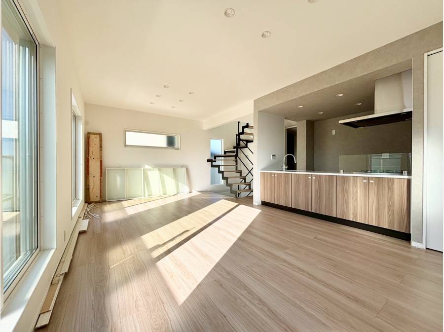 階段を上がれば、明るい光が差し込む心地よいLDKが広がります。