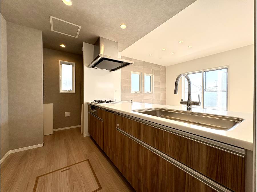 性能面でも、高い基準をクリアした「認定長期優良住宅」で、耐震等級3を取得。光セラ外壁や防犯性の高い電動シャッターなど、日々の暮らしを支える仕様が整っています。