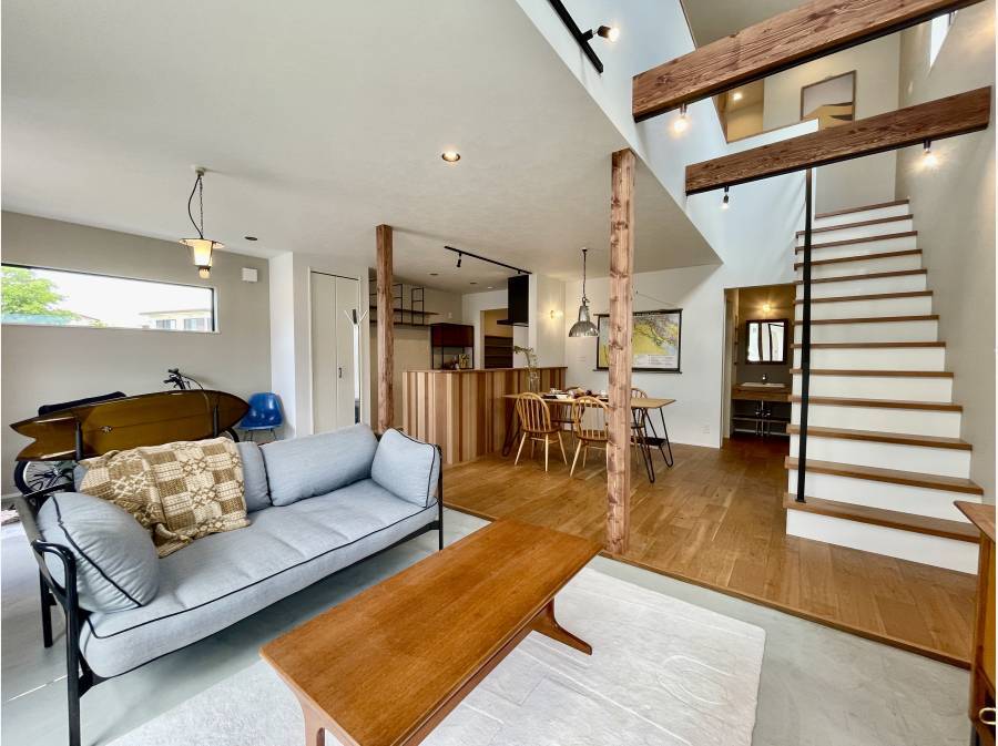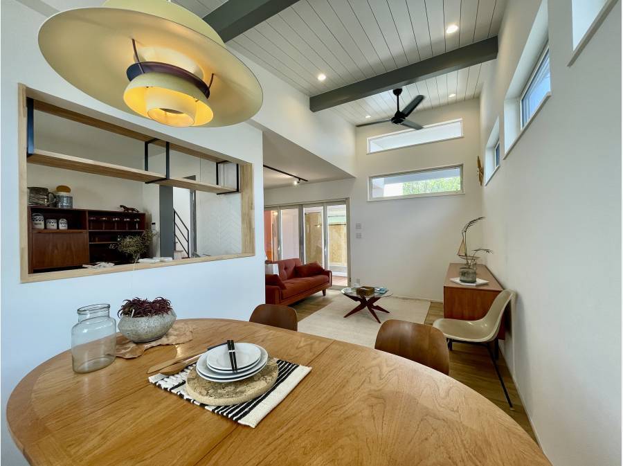 ミッドセンチュリーの落ち着きと現代的な洗練が溶け合った、上質なリビングを演出します。