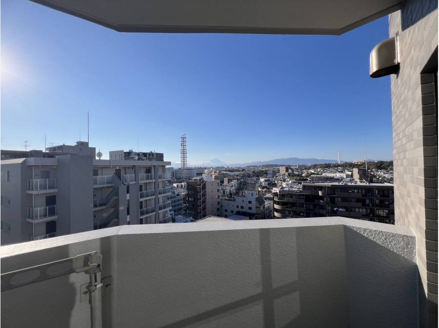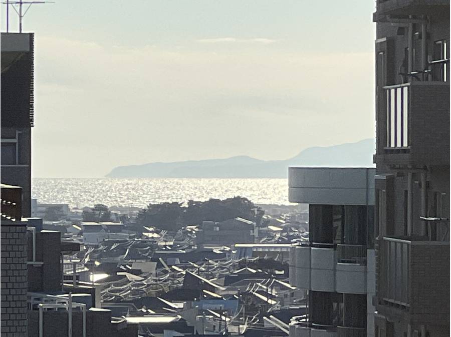 バルコニーからは、きらめく海の光が美しく、また富士山を電線越しではなくはっきりと眺めることができます。とても魅力的なお部屋です!