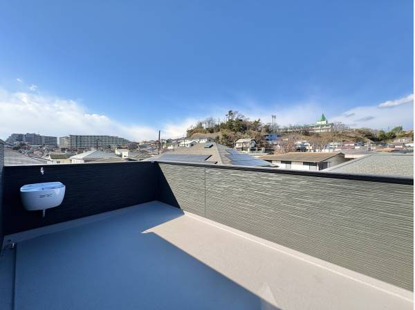 スカイバルコニーは広々としており、ソファを置いてくつろぎのひとときを楽しめます。