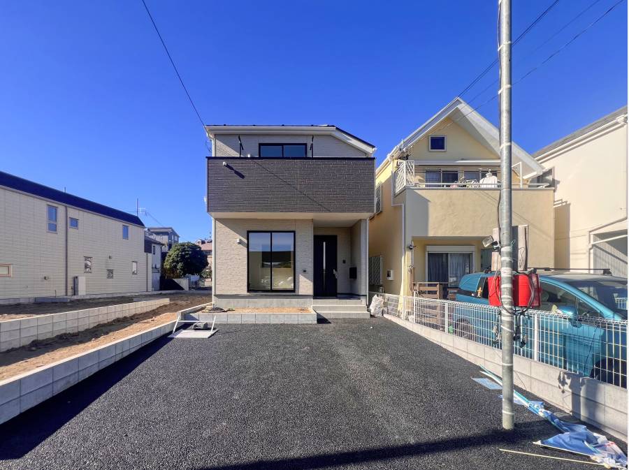海まで徒歩11分(850m)、シンプルで機能的な新築戸建て。