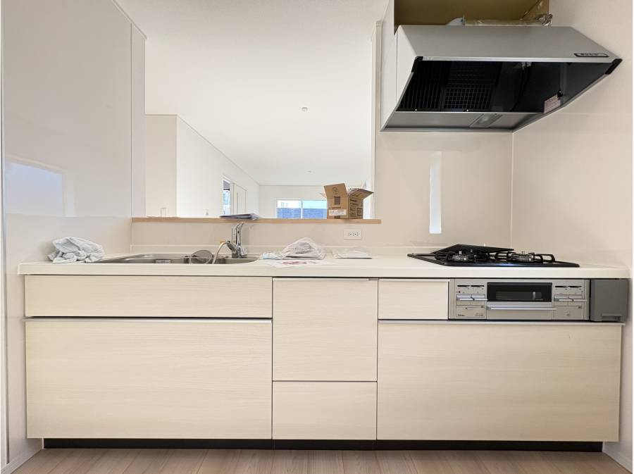 1階のLDKは約17.5帖の広々とした空間で、対面式キッチンが設置されています。家族との会話を楽しみながらお料理をする時間を演出してくれます。