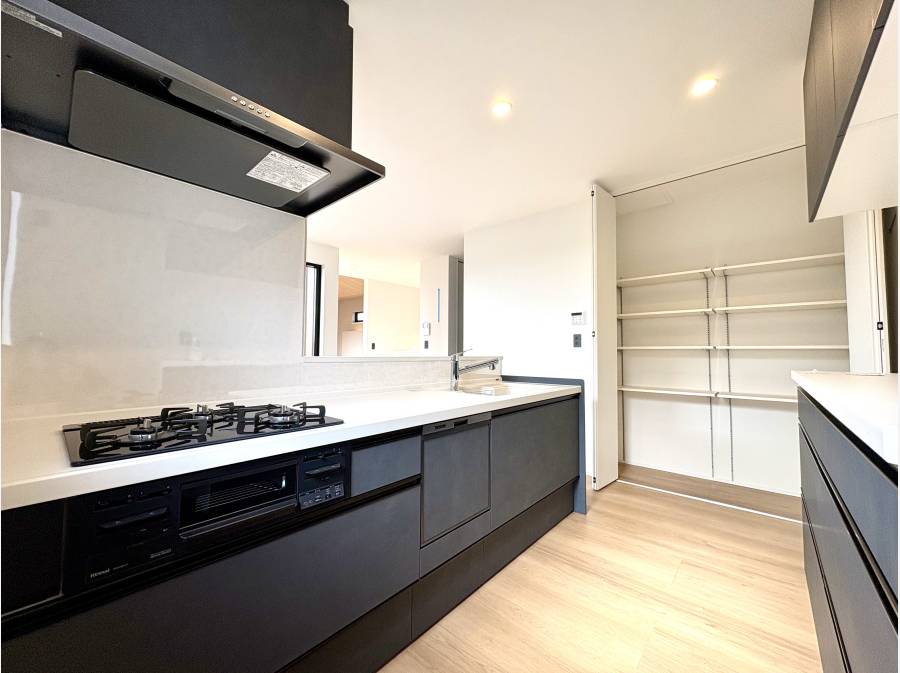 キッチン横には便利なパントリーを備え、1階には5.3帖の納戸(サービスルーム)を設けるなど、駅近の利便性と豊かな居住性を両立させました。
