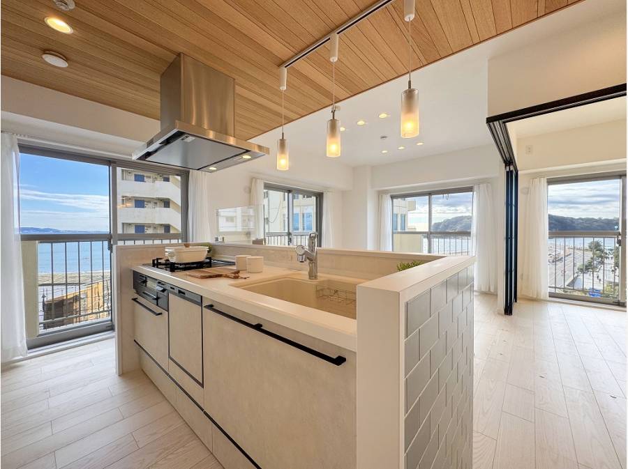 LDKと居室はぐるっとバルコニーに囲まれ、どの空間からも海を望めます。