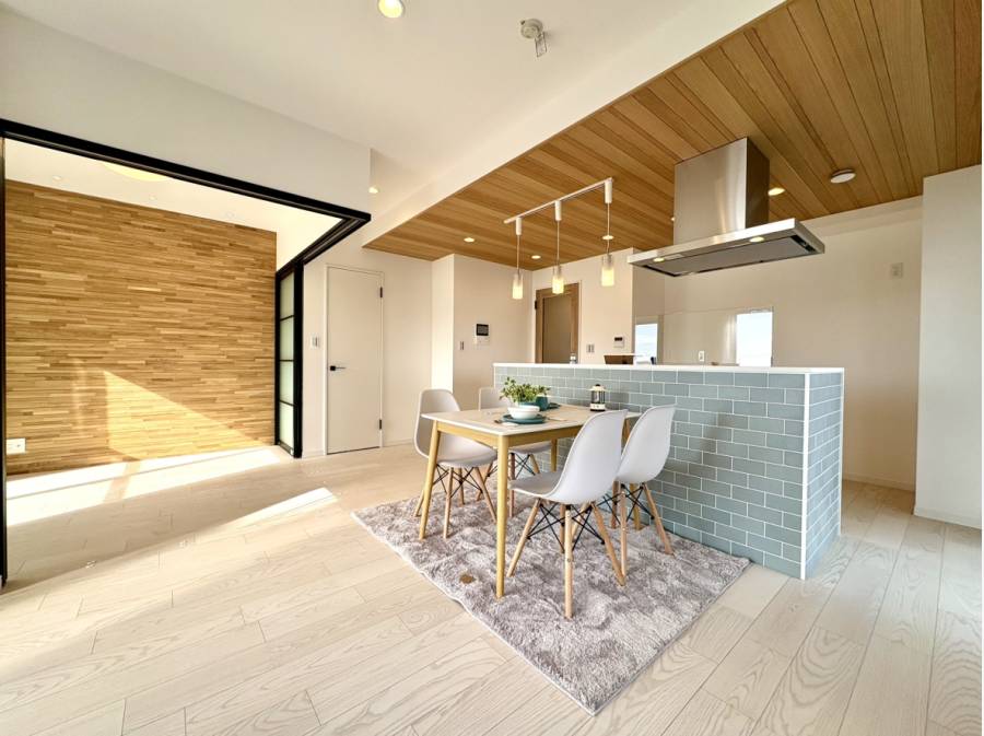 さらに、洋室には無垢挽き板貼りやフレームタイプのガラス引戸が採用され、デザイン性も高めています。