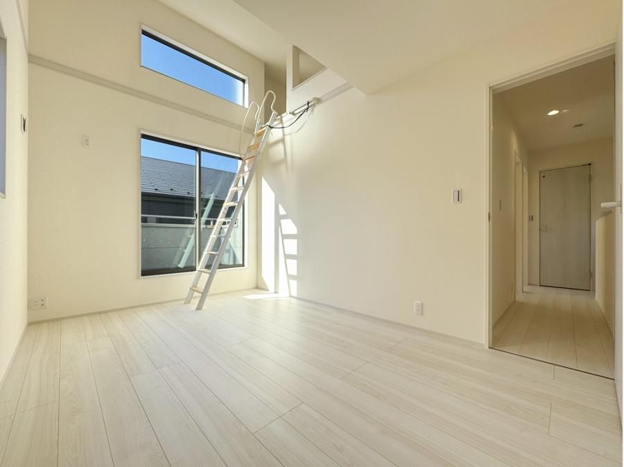 上のフロアには、縦の広がりが心地よい吹き抜け天井の主寝室やロフトを完備したお部屋など、3つの居室が並んでいます。