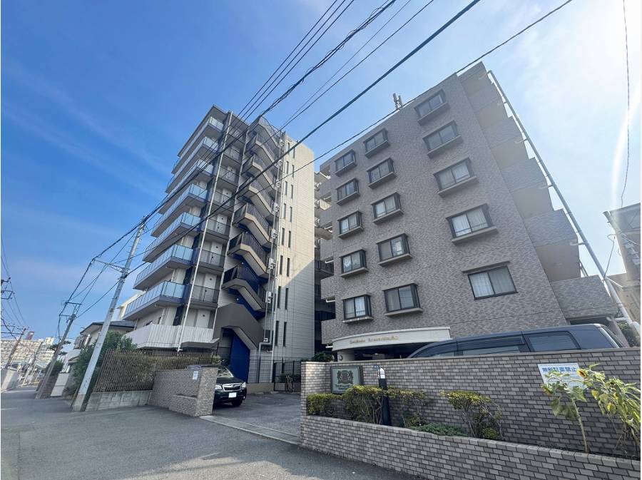 爽やかな潮風の吹き抜ける海岸沿いより1本入った立地に佇むマンション。