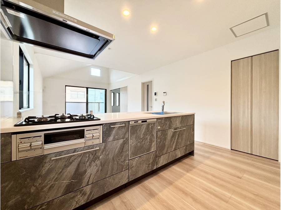 2階には、明るく開放的なLDKを配置しており、家族が自然に集まる快適な空間を演出。収納も各所に設けられ、生活感を抑えたすっきりとした暮らしを実現できます。設備仕様は使いやすさと安心感を大切にした内容で、長く快適にお住まいいただけます。
