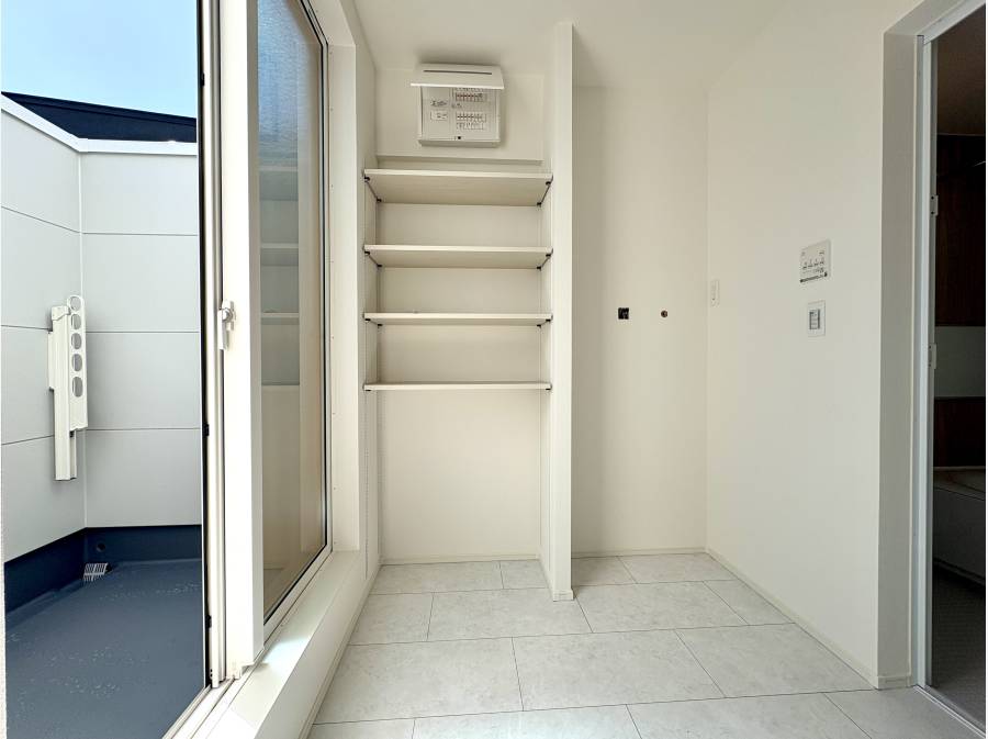 設計には女性設計士の視点を活かし、ランドリーからそのまま物干しバルコニーへ出られるスマートな家事動線を実現しました。