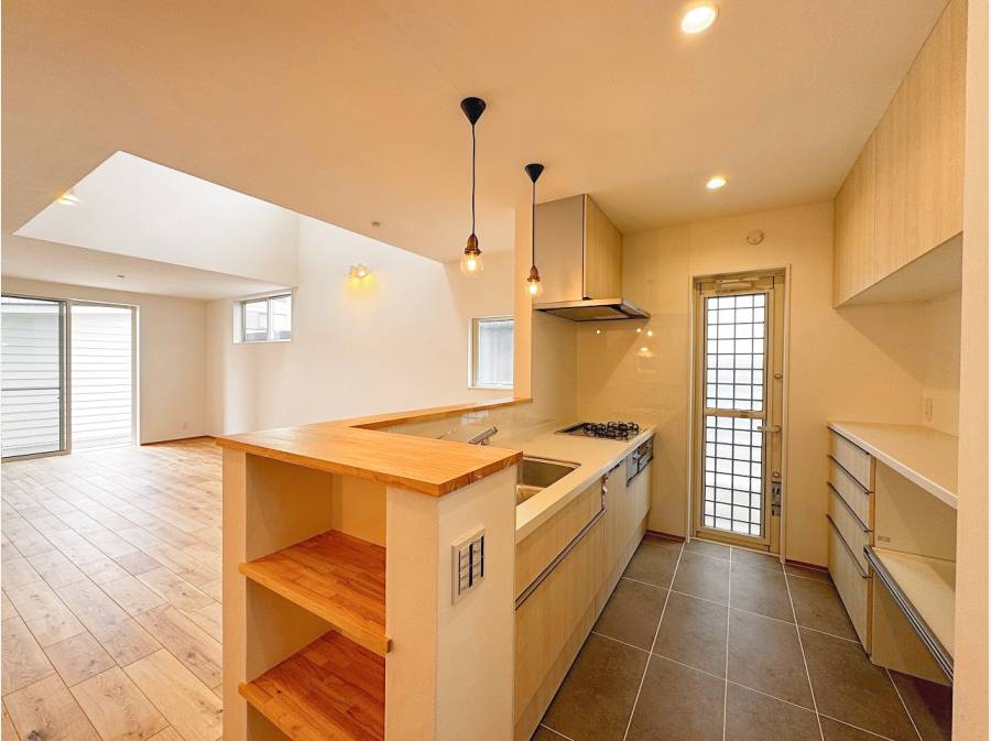 ガレージの奥に3LDK+フリースペースの住居があります。