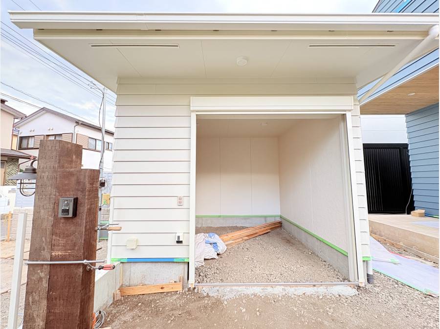 落ち着いた住環境に誕生した、バイクガレージ付き新築デザイナーズハウスのご紹介です。