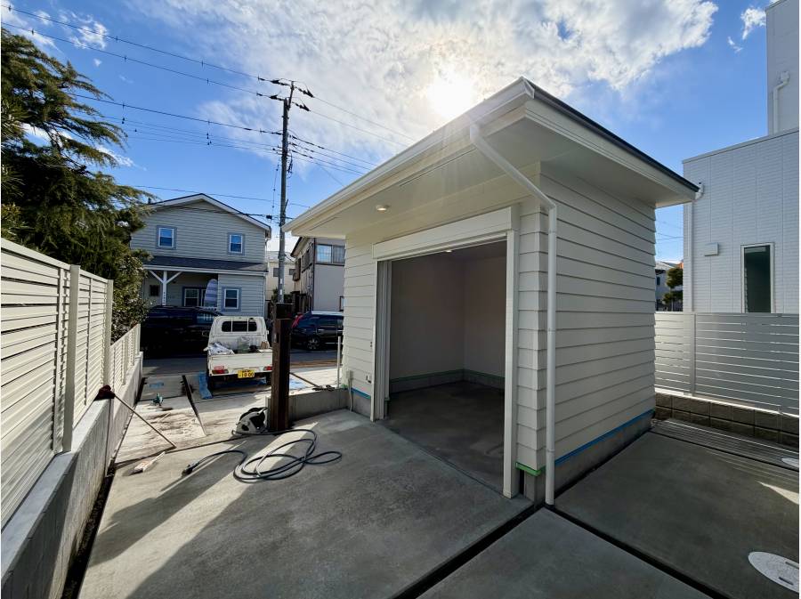 今回は、藤沢市辻堂にあるラップサイディングを用いたカリフォルニアデザインの新築戸建をご紹介します。約5帖のスペースを活用した「秘密基地」は、趣味の道具やバイクの保管にぴったりなガレージハウスが魅力的です。