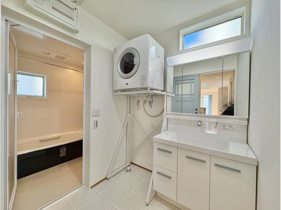 キッチンや洗面所の床は磁器タイルを使用し、ラップサイディングはハイブリッドコートで耐久性にも配慮されています。