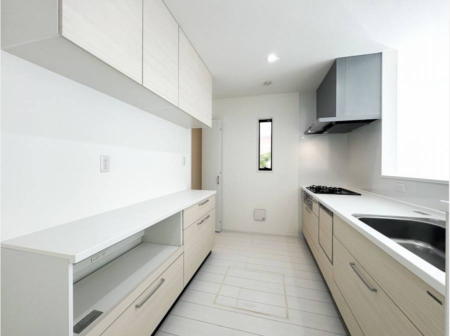 キッチンにはカップボードとシェルフ付きのパントリーを完備し、主寝室にはウォークインクローゼットも備わっています。