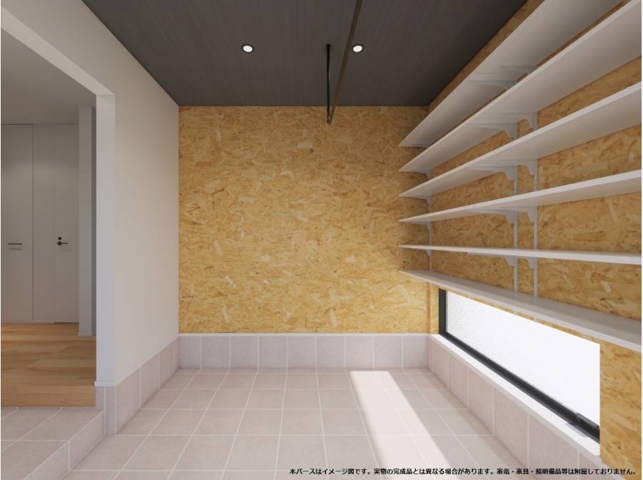 玄関横には自転車ごと入れられる土間収納スペースを配置。