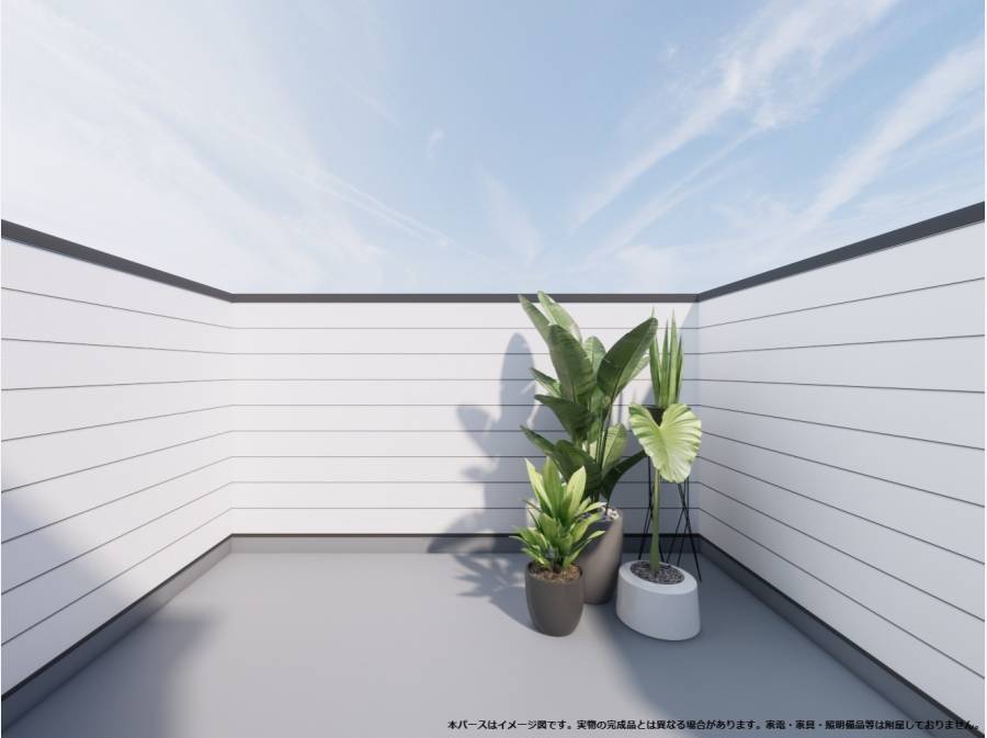 約9帖のルーフバルコニーにカースペース2台分。