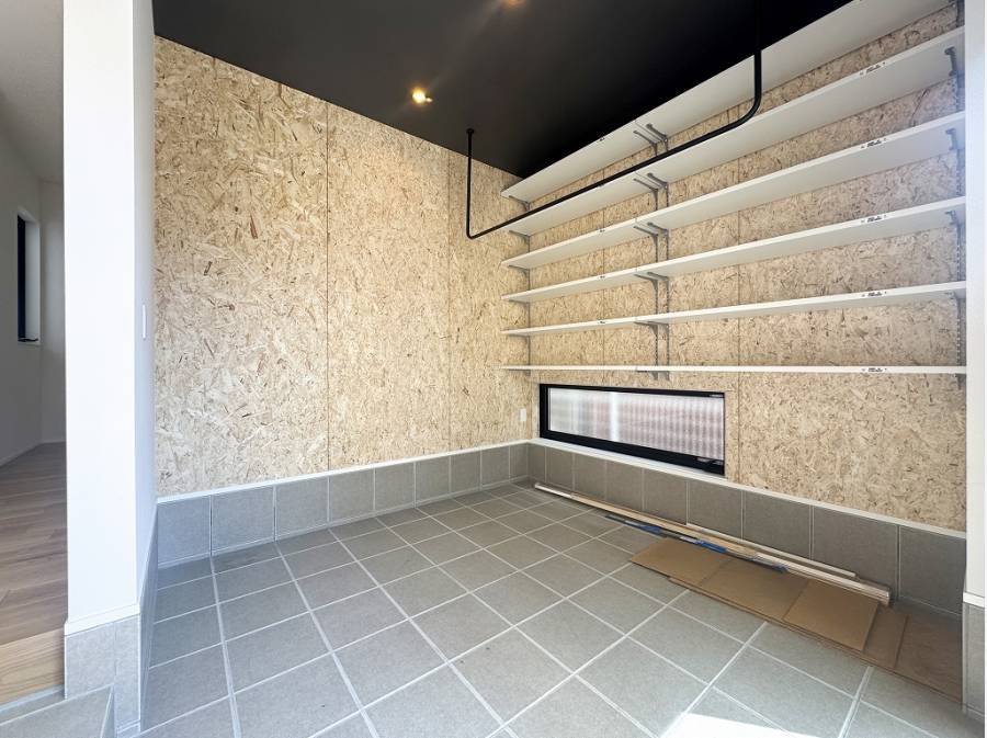 右側の引き戸を開けると機能美息づく土間スペース。