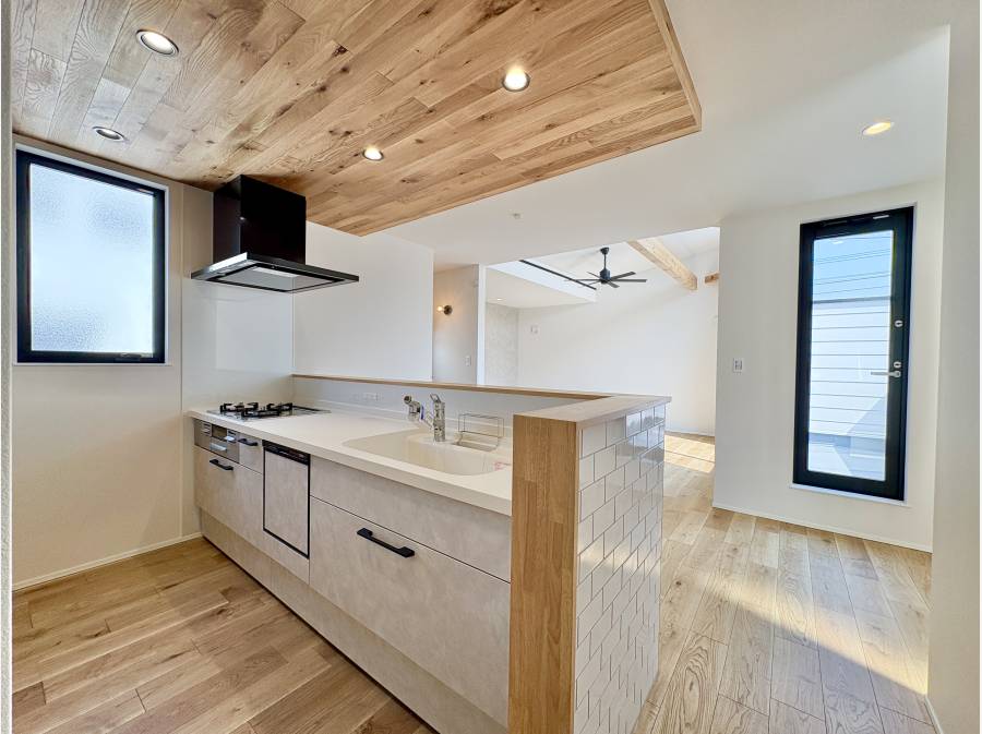 LDKは21帖あり、リビングが勾配天井になっておりますので、とても広い空間になります。