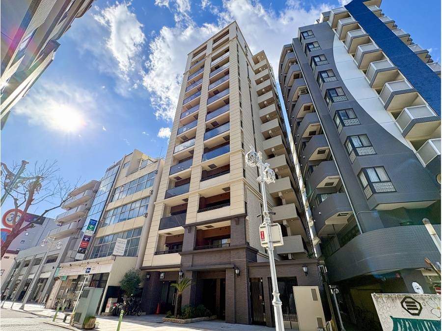 すらりと空へと向かって伸びるスタイリッシュなこちらのマンションは、令和5年築とまだまだ綺麗な印象です。