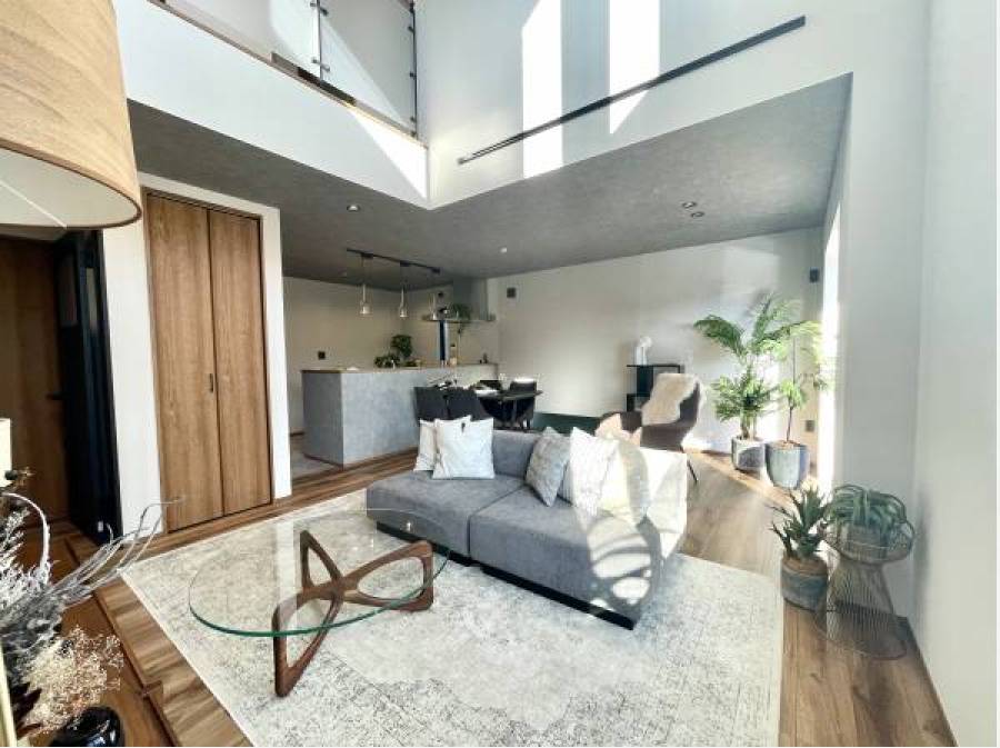 天井高を活かしたリビングは、光と風がやさしく巡り、