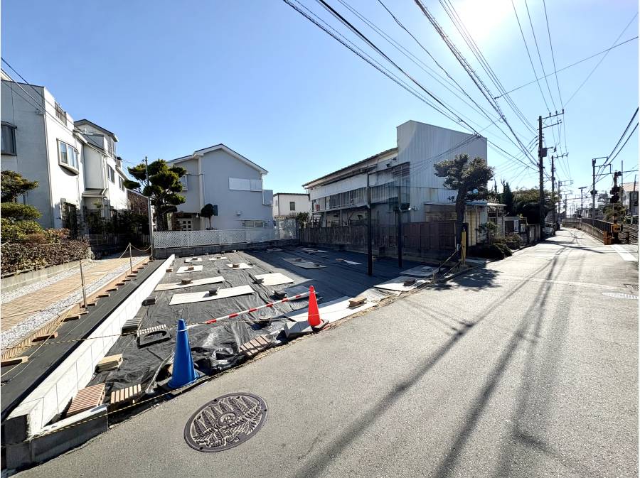 鵠沼駅から徒歩2分の静かな街並み。建築条件なしの開放的な更地です。