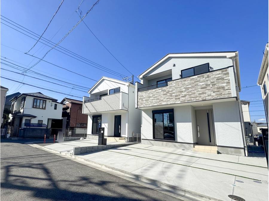 前面道路からも一目でわかる陽当たりの良さと開放感溢れる佇まいが、明るい暮らしを予感させます。