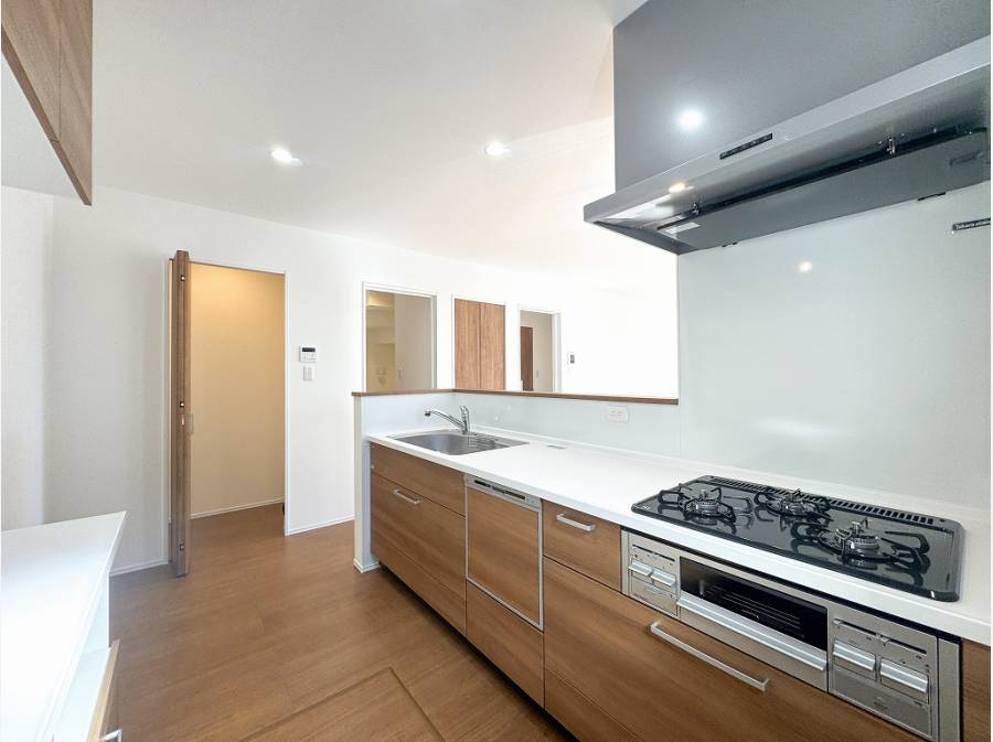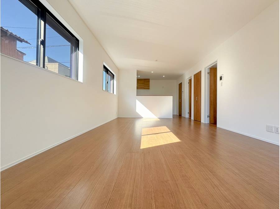使い勝手の良い長方形のシンプルなリビング、ストック保管に役立つキッチン横の収納、集約された水周りなど‥暮らしやすさを感じられる間取りです。