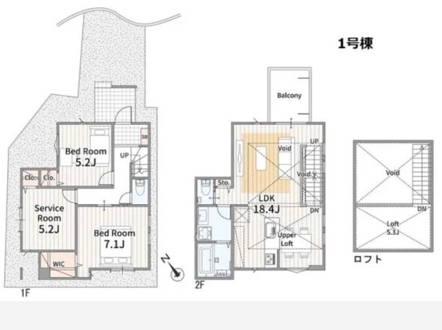 | 間取り | 2LDK + サービスルーム(5.2帖)+ロフト+ウォークインクローゼット 間取り・区画図を取り寄せる | 構造・階建て | 木造 地上2階 |
