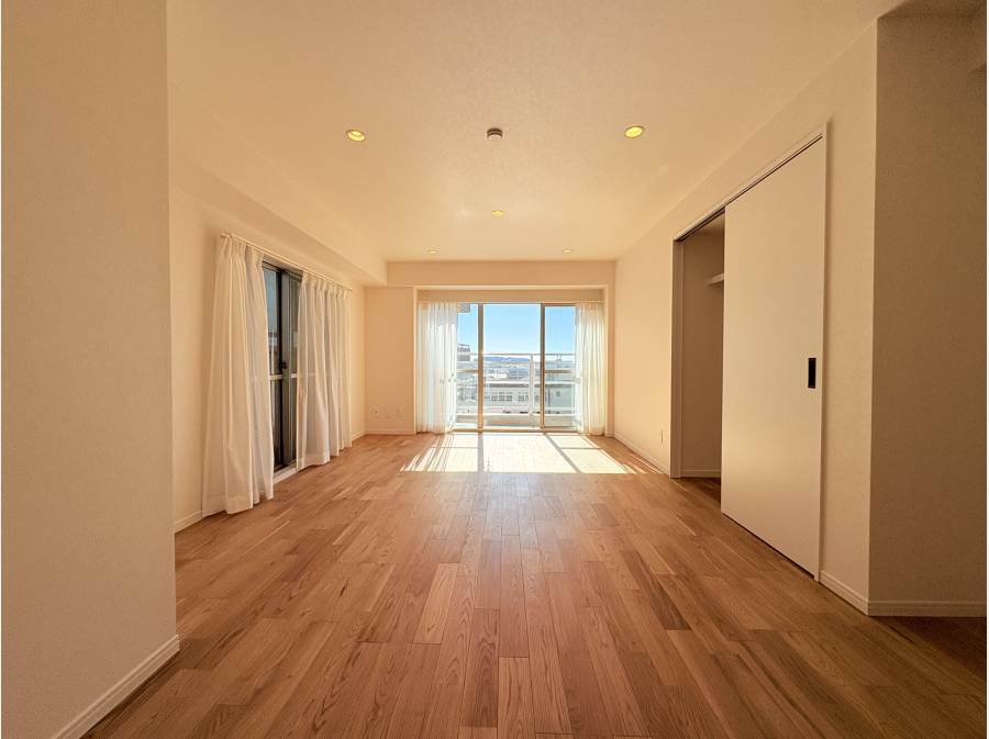 5階部分の南向き角部屋のため陽当たりも良く、広々とした17.1帖のLDKにはBluetooth対応スピーカーを内蔵。