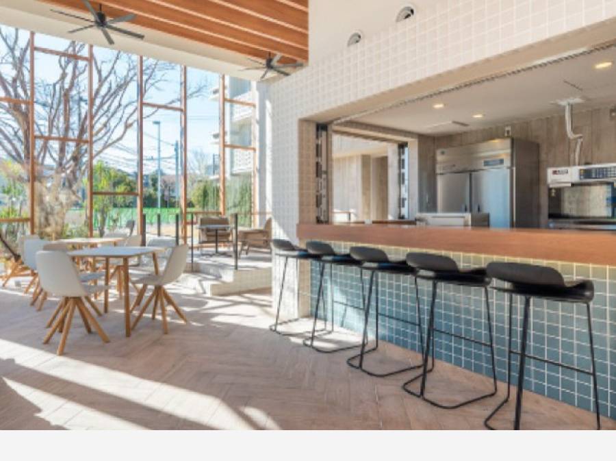 敷地内にはカフェやジム、BBQテラスもあり、マンション全体がひとつの街のような快適さです。
