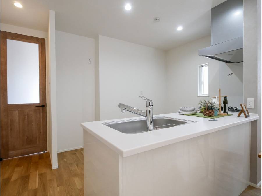 キッチン前には造作カウンターが設置され、お子様のリビング学習やPC作業、ユーティリティとして役立ちそう。
