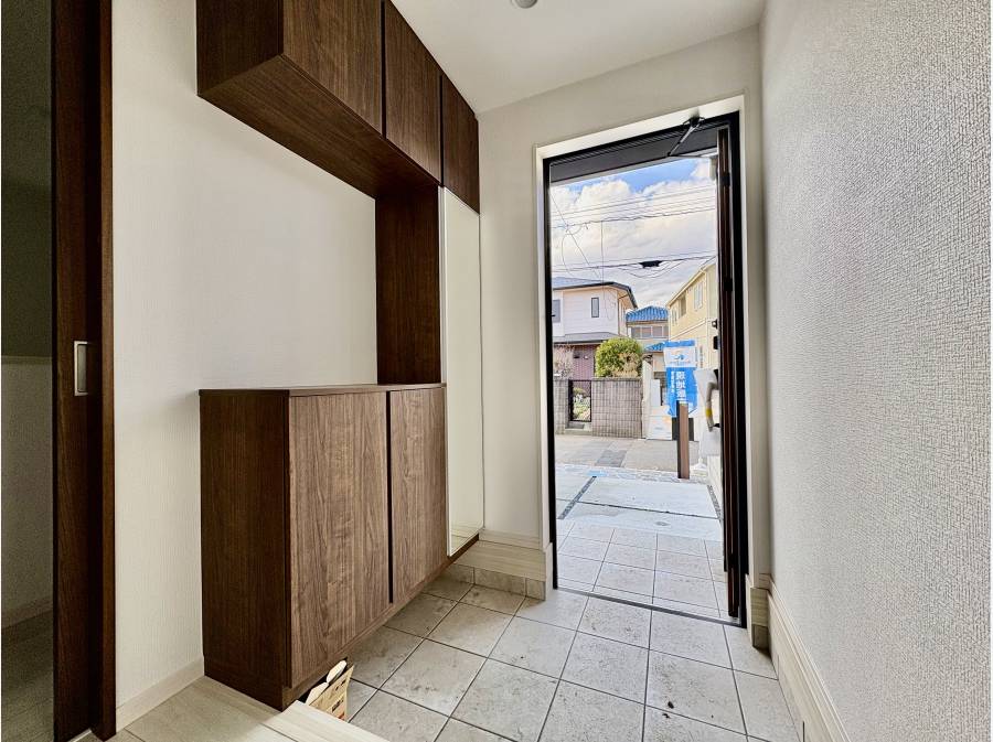 玄関の前が駐車場なので、子供やペットが突然道路に飛び出しても安心な設計となております。