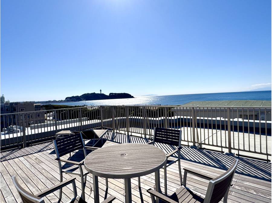 鵠沼海岸の波音が心に響き、江ノ島と富士山を一望できる。