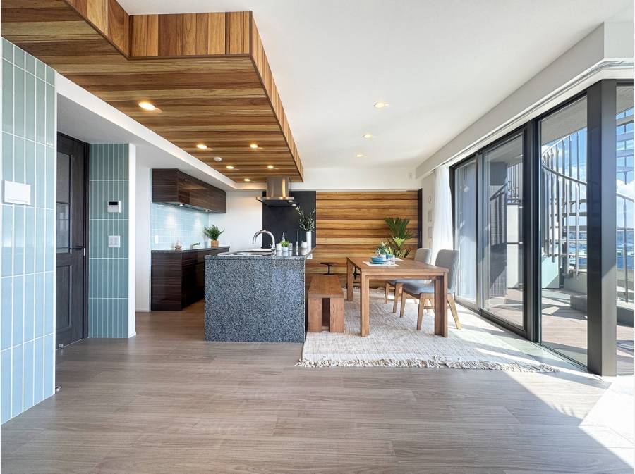 ドアを開けた瞬間に声が溢れてしまいそうな開放感溢れるLDK。