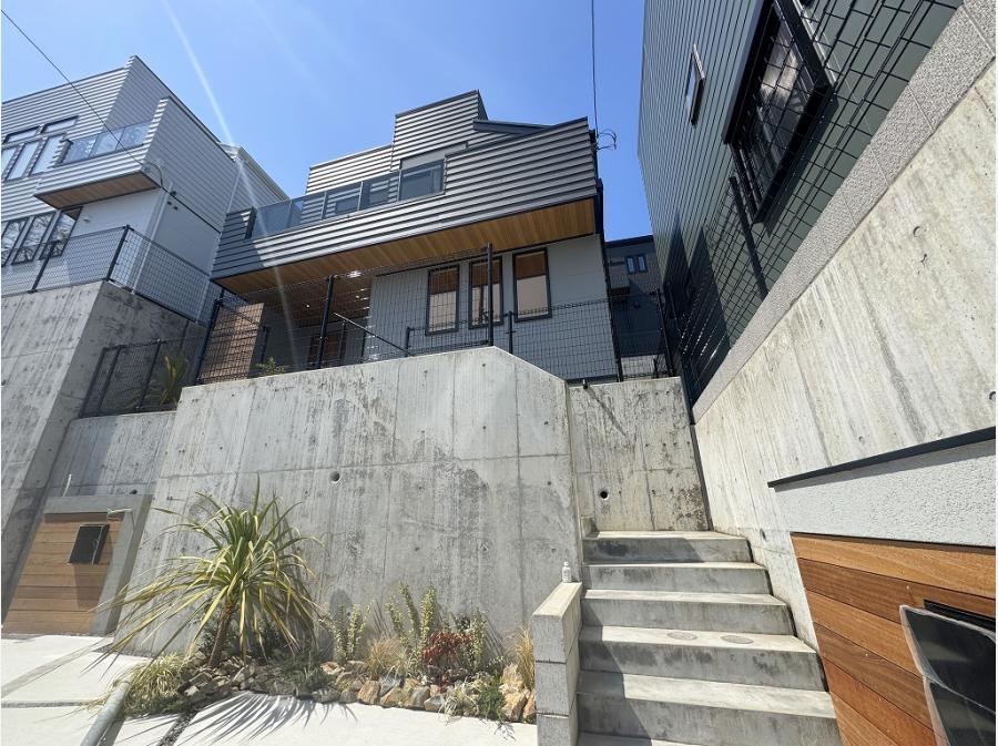 接道より高い場所に建物があり、贅沢な眺望とプライベート感を実現しています。