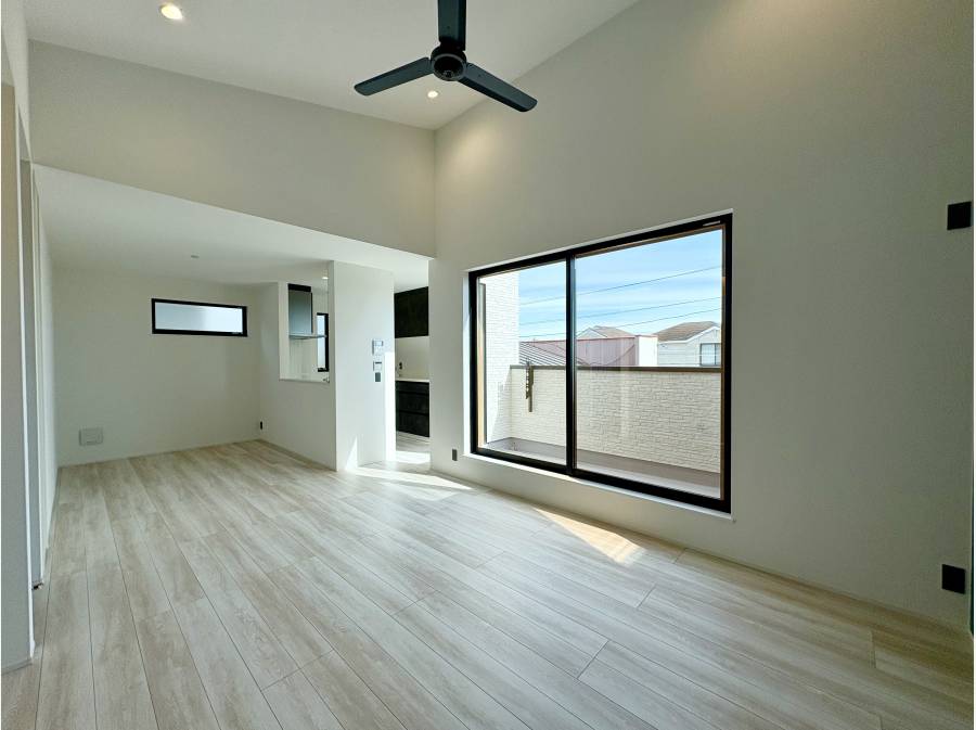 住宅は、空間の広がりを意識した設計が魅力です。特に2階のリビングダイニングには「勾配天井」を採用し、上へと広がる空間が光と風を呼び込みます。家の中にいながら、まるでリゾートにいるかのような解放感を味わえる設計です。