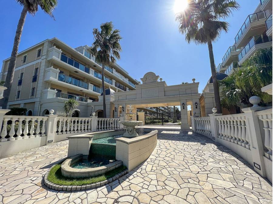 敷地内には噴水やヤシの木が植えられリゾート感あふれる雰囲気が素敵なマンションです。