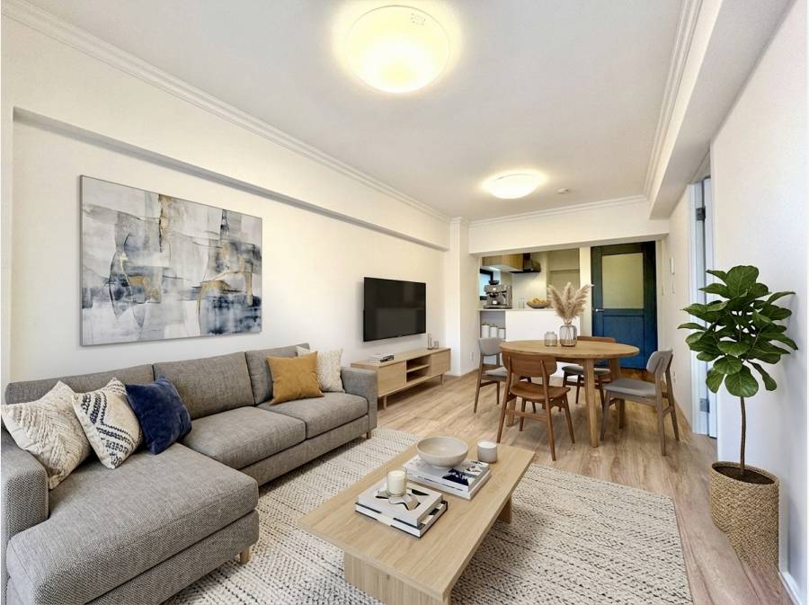 海はすぐそこ!鵠沼海岸の光と風を感じる、1LDKリノベーション。開放的なLDKと充実の最新設備が、心地よい暮らしを叶えます。